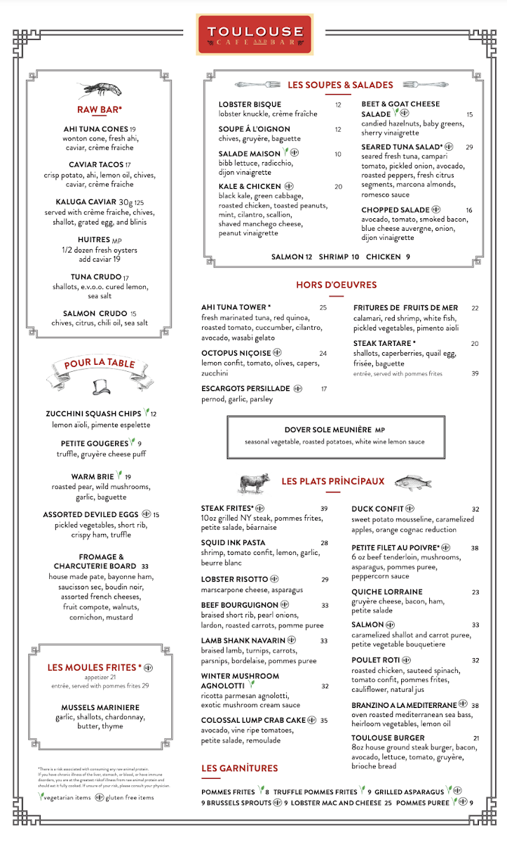 Welcome to Toulouse Cafe and Bar, a chic haven in Plano, Texas, where modern French cuisine meets an inviting atmosphere. The menu showcases culinary highlights that delight the senses, from an exquisite lobster bisque bursting with flavor to the perfectly crafted steak tartare. Each dish crafted deserves a star of its own, reflecting a masterful blend of fresh ingredients and traditional techniques.